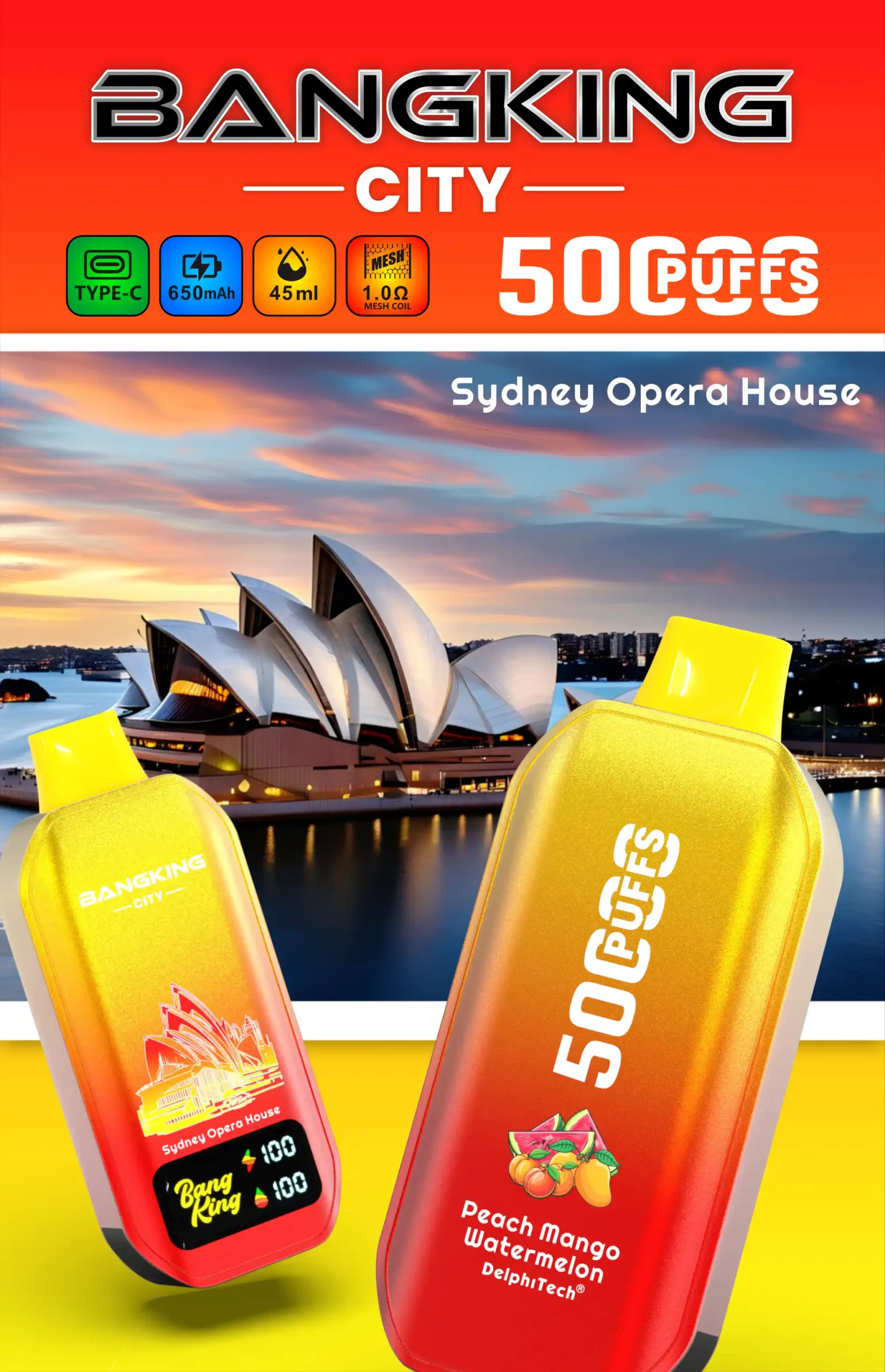BANG KING 50000 Puffs CITY BK5 CT Disposable Vape Features: